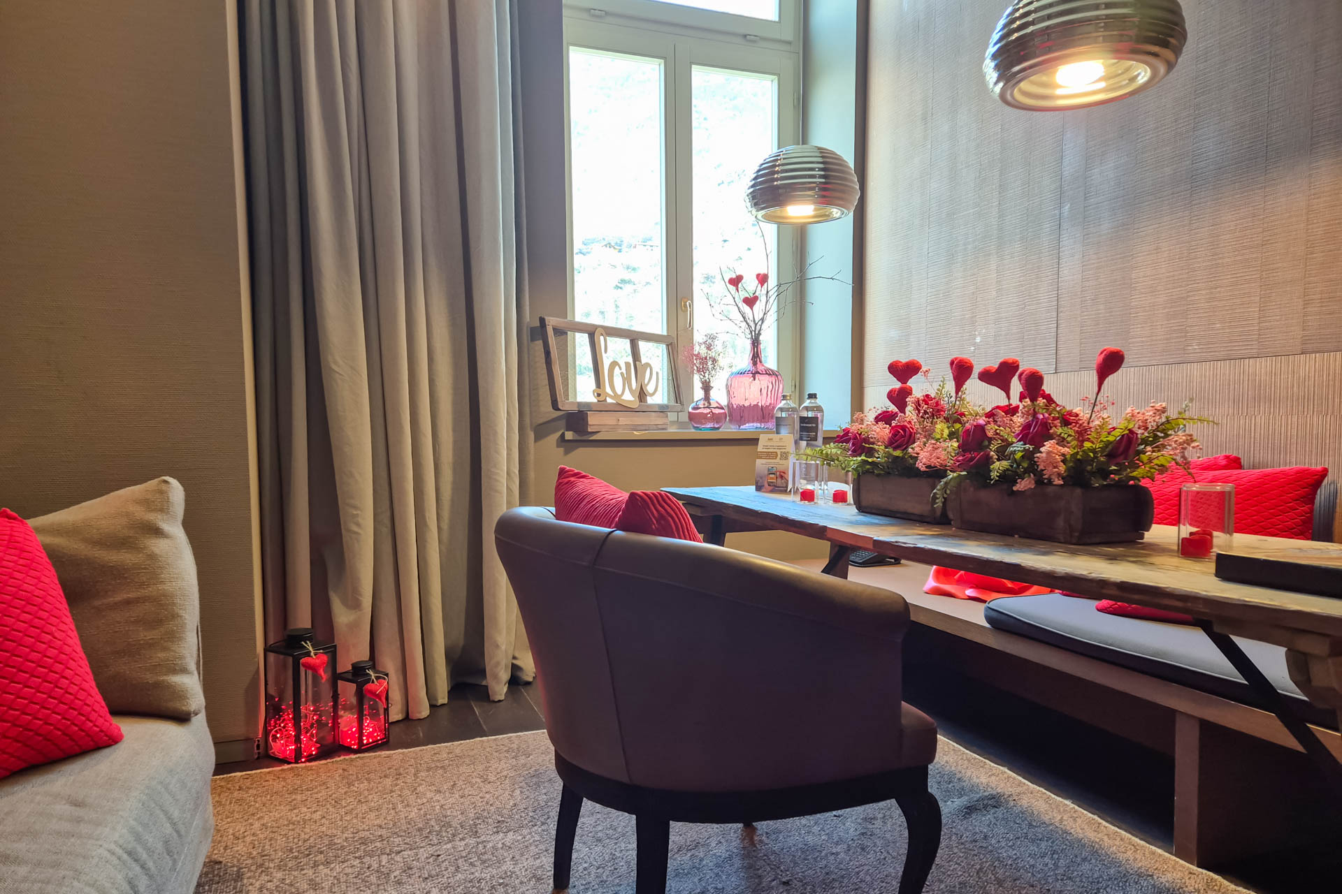 Dalle finestre, lo sguardo si perde tra i profili maestosi delle Alpi valdostane, regalando scenari che cambiano con la luce del giorno e rendono ogni risveglio speciale. Dopo una giornata trascorsa tra natura, benessere o passeggiate nel cuore della Valle d’Aosta, la suite diventa il luogo ideale in cui rientrare, brindare insieme e godersi il silenzio, interrotto solo da qualche risata o da un momento di dolce relax.